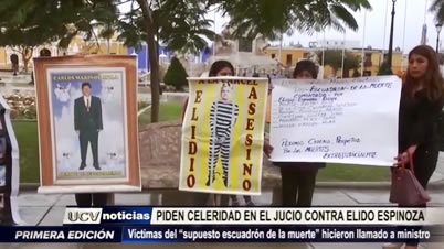 Integrantes de la Asociación de Víctimas del denominado “Escuadrón de la muerte”, realizaron un plantón para exigirle al Ministro del Interior celeridad en el juicio que se le sigue al alcalde de Trujillo, Elidio Espinoza, por el presunto asesinato de tres supuestos delincuentes.