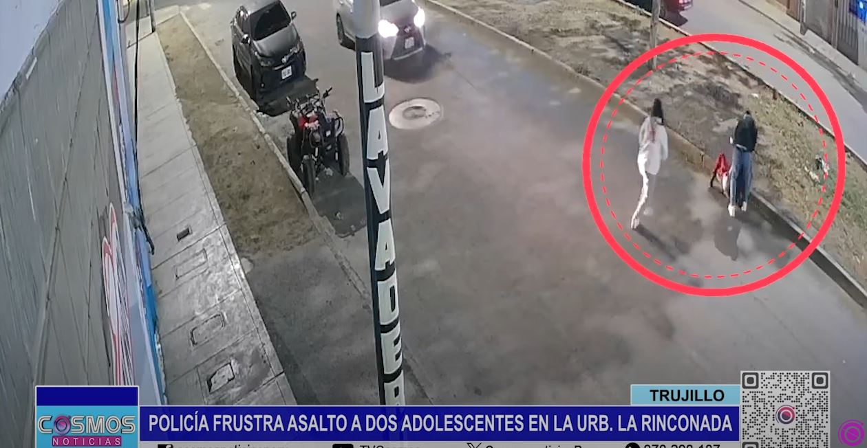 En la Av. Pesqueda, en la Urb. La Rinconada de Trujillo, cámaras de seguridad captaron un intento de asalto a dos menores de edad, una mujer y un hombre. En el video se aprecia que estaban caminando por la vereda cuando aparece un delincuente y los amenaza con un arma de fuego. El joven trata de huir hacia la berma central y es alcanzado por el malhechor, quien intenta quitarle sus pertenencias.