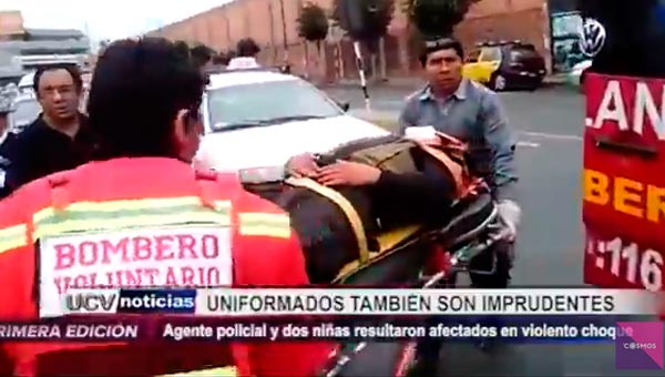 Agente policíal y dos menores heridos de consideración fue el saldo del violento choque entre un microbús de transporte urbano y una motocicleta, en la Avenida España. El vehículo menor era conducido por el uniformado.