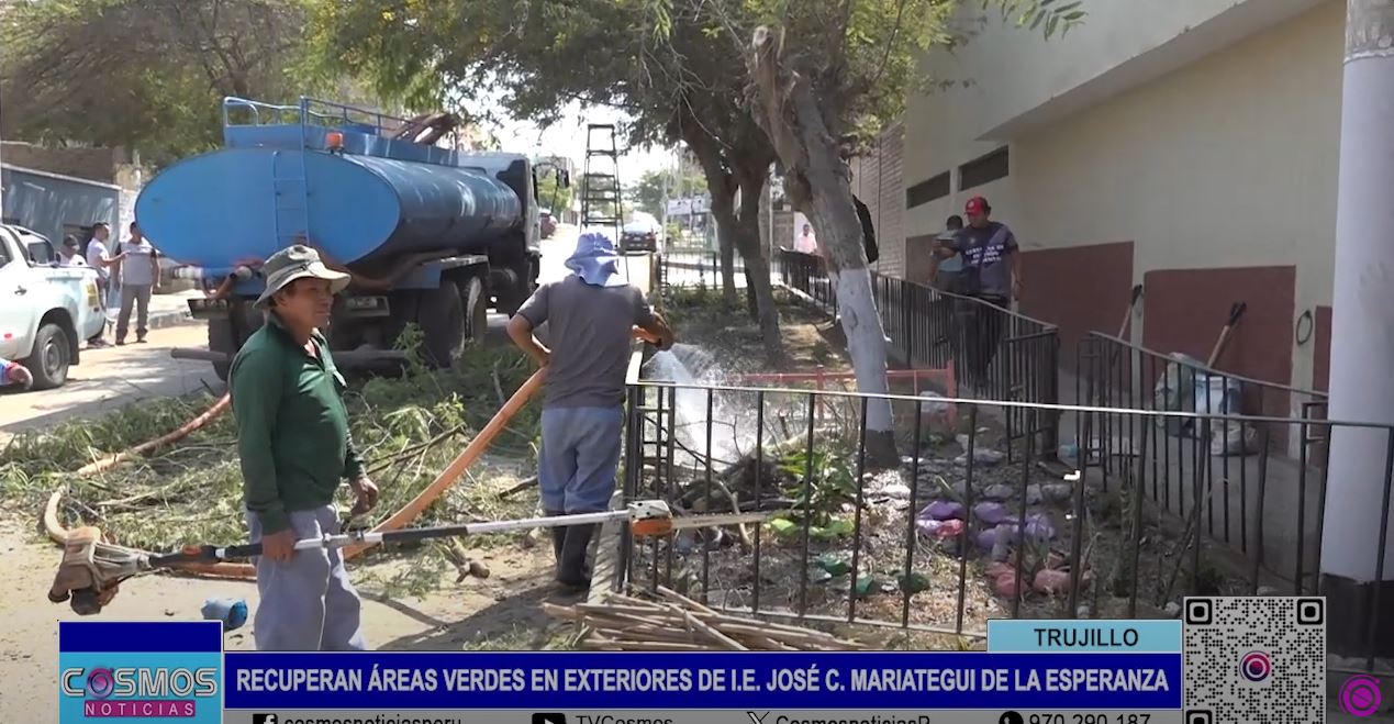 Vecinos, autoridades y padres de familia se reunieron en el Colegio José Carlos Mariátegui del distrito trujillano de La Esperanza para recuperar áreas verdes y garantizar un buen inicio del año escolar.