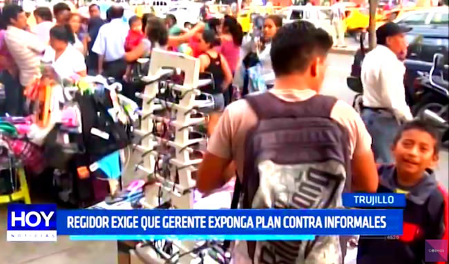 El regidor provincial de Trujillo Luis Bahamonde solicitó la presentación del gerente de Desarrollo Económico Local, para que exponga su plan y estrategia de trabajo respecto a la erradicación del comercio informal.