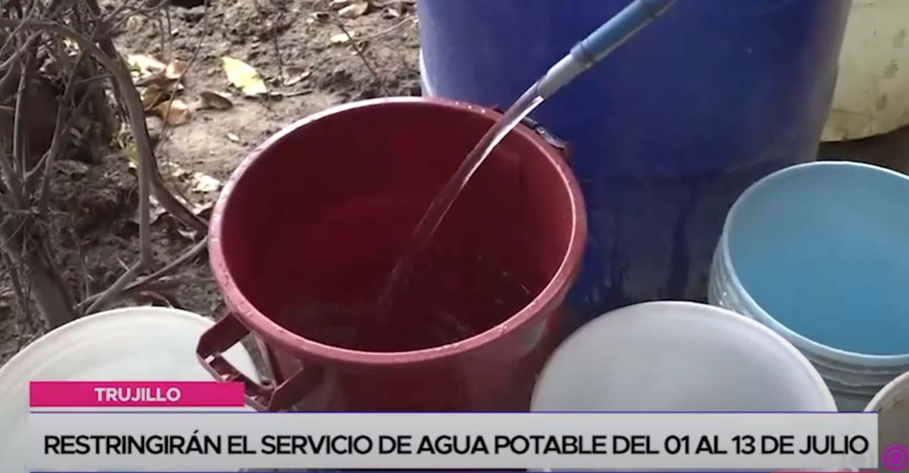 Debido al mantenimiento de la planta de agua y reparación de la tubería de Chavimochic, el servicio de agua potable será restringido del 01 al 13 de julio. Los días 11 y 12 el corte será total en Trujillo.