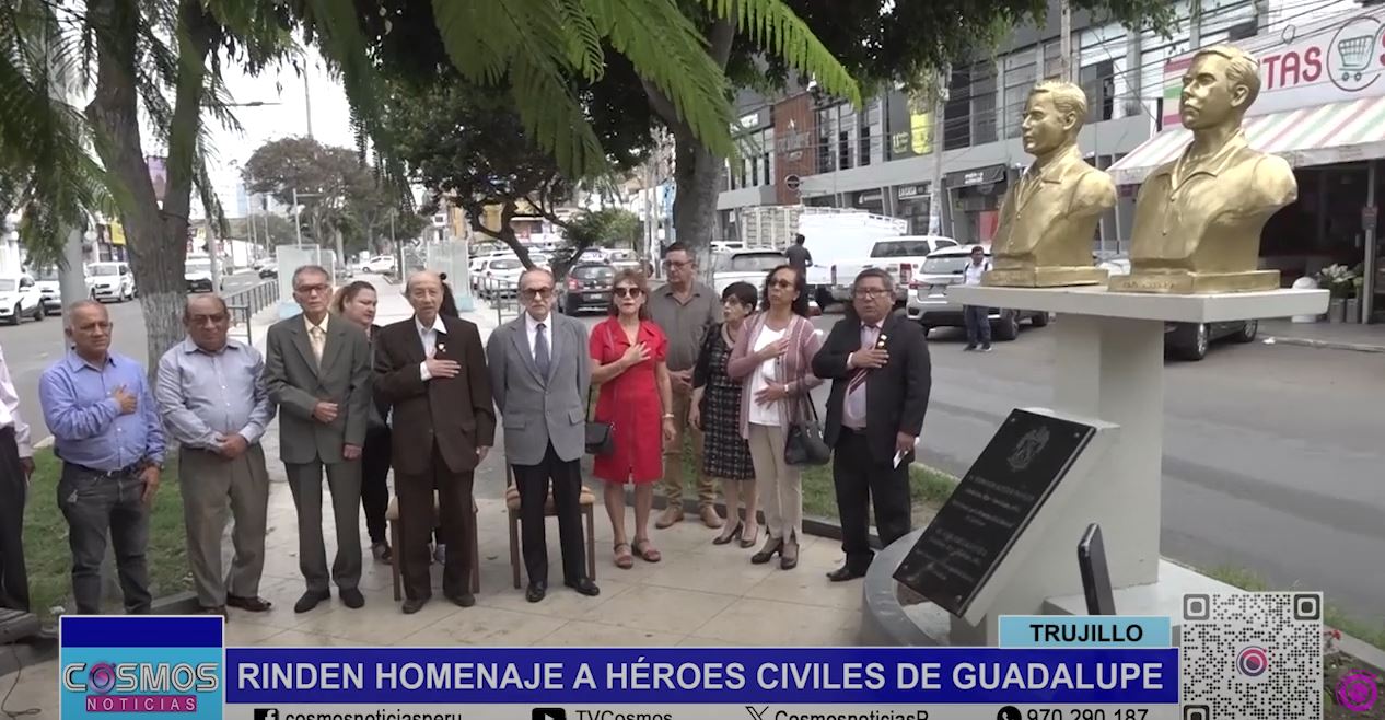 La Asociación de Guadalupanos residentes en Trujillo realizaron una emotiva ceremonia en homenaje a Fernando Albújar, Justo Albújar y Manuel Guarniz, héroes de su distrito que lucharon en la batalla contra Chile.