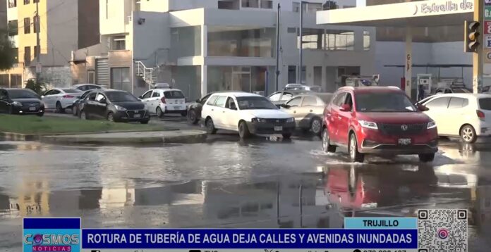 Una rotura de tubería de agua en la Av. América Oeste, en Trujillo, dejó a varias calles y avenidas inundadas. El Centro Pre Universitario (CEPUNT), también se vio afectado.