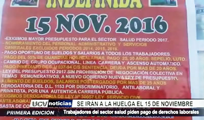 Los agremiados a la Federación Unificada de Trabajadores del Sector Salud, acatarán desde mañana 15 de noviembre una huelga nacional indefinida, exigiendo al Gobierno Central que se les pague parte de sus derechos laborales.