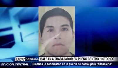 Sicarios acribillaron a Oscar Eduardo Sánchez López, trabajador de un hostal en el Centro Histórico. El móvil sería una venganza, pues la víctima días antes declaró en contra del prestamista Víctor Hugo Segura, que también fue atacado a balazos el pasado mes de octubre.