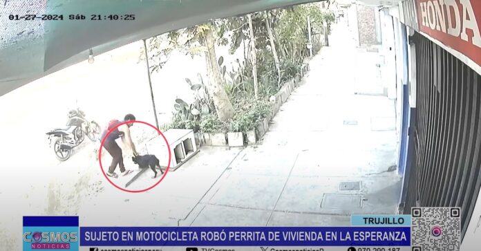 Ni los animales se salvan de los facinerosos, cámaras de seguridad de una vivienda en la Av. Cahuide del distrito de La Esperanza captaron a un sujeto que llegó a bordo de su motocicleta para llevarse a una perrita que se había convertido en la mascota de una familia.