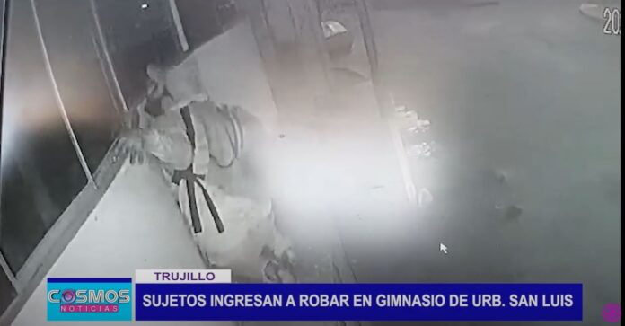 Dos sujetos fueron captados por cámaras de vigilancia ingresando a robar en un gimnasio de la urbanización San Luis, en Trujillo. Se llevaron parlantes y dinero en efectivo.