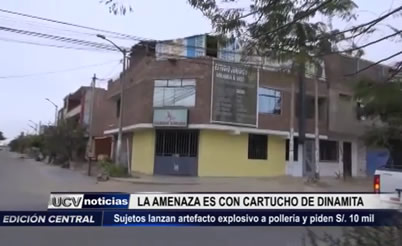 Extorsionadores lanzaron explosivo a pollería en La Esperanza y dejaron una carta extorsiva. Exigen el pago de un cupo de diez mil soles. La víctima califica el atentado como acto terrorista.