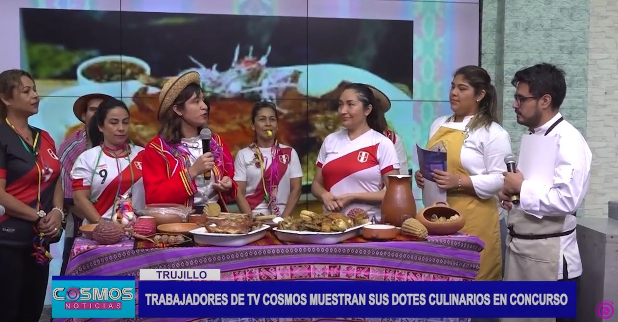 Trabajadores de TV Cosmos participaron en un concurso gastronómico por Fiestas Patrias, donde representaron platos típicos de la costa, sierra y selva. Los platillos fueron elaborados por cada integrante. El área administrativa resultó ganadora con un delicioso menú que incluía cuy frito, pachamanca a la olla, dulce de Chiclayo y jugo de chicha de jora.