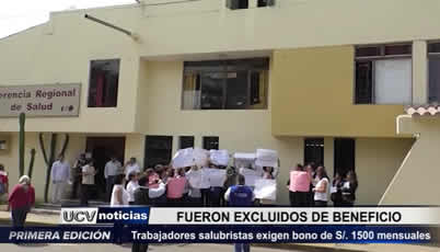 Trabajadores de la Gerencia Regional de Salud exigen el pago de una bonificación de 1500 soles mensuales, tal como la reciben los profesionales de la DIGESA y la DIGEMID.