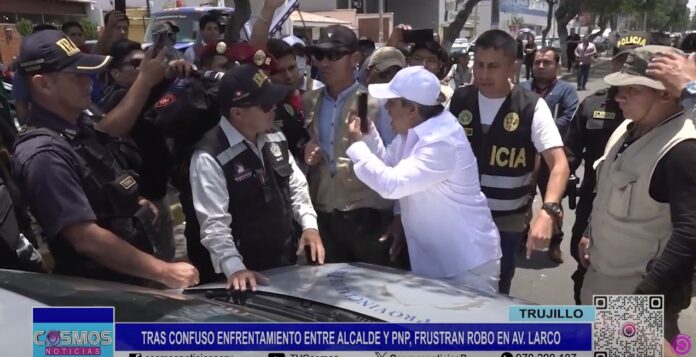 En un confuso enfrentamiento entre la Policía Nacional, personal de Serenazgo y el alcalde de Trujillo, fue frustrado un robo de dinero a una ciudadana que salía de una entidad bancaria en la cuadra 7 de la Av. Larco; el burgomaestre denunció públicamente que los efectivos policiales no intervinieron correctamente, mientras que el jefe de la DIVINCRI, Javier Méndez, indicó que el alcalde habría perturbado la actividad probatoria y la intervención policial.