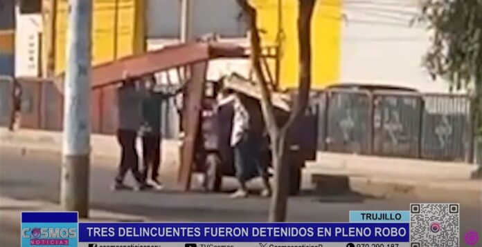 El Grupo Terna realizó un seguimiento a los delincuentes y los detuvo cuando estaban a punto de llevarse puertas, camas, una bicicleta y un extintor de una vivienda ubicada en la avenida Nicolás de Piérola, en Trujillo.