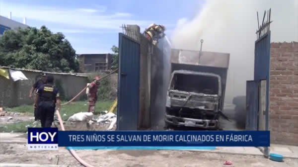 Tres niños se salvaron de morir calcinados en un incendio, en una fábrica clandestina de colchones. Un camión quedó en escombros tras ser alcanzado por el fuego.