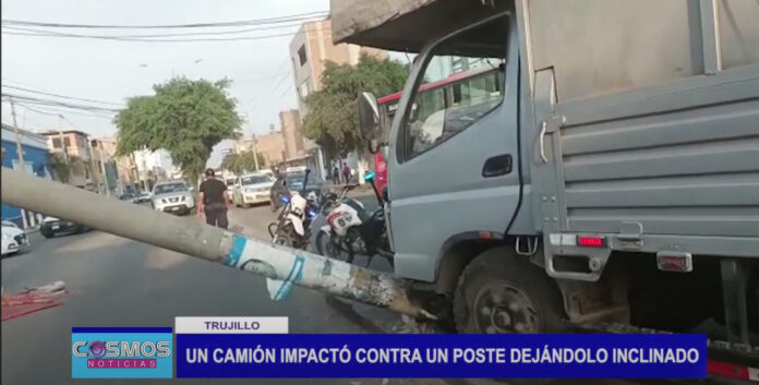 En la av. Mansiche cuadra 19, en la ciudad de Trujillo, un camión al parecer perdió el control y subió la berma central de la transitada avenida impactando contra un poste de alumbrado público, quedando en esta situación, causando un gran temor en los moradores y transeúntes.