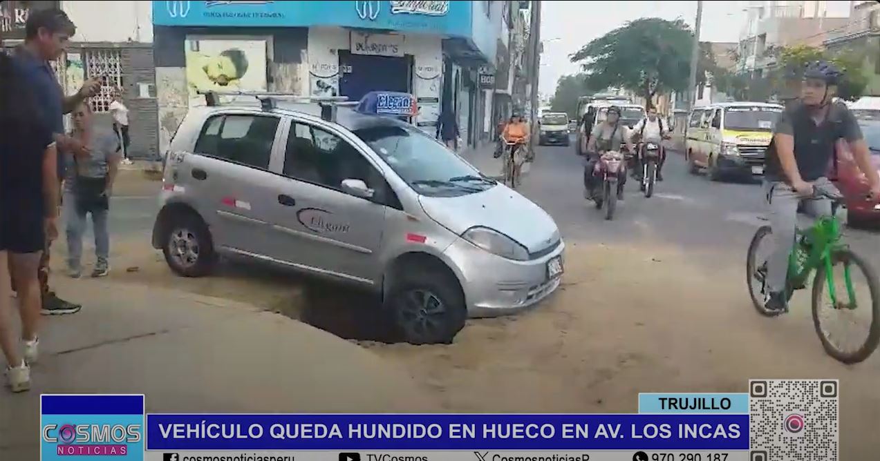 Un hecho inédito ocurrió en la intersección de Av. Los Incas con Huayna Capac, donde un vehículo terminó hundido en un hueco.