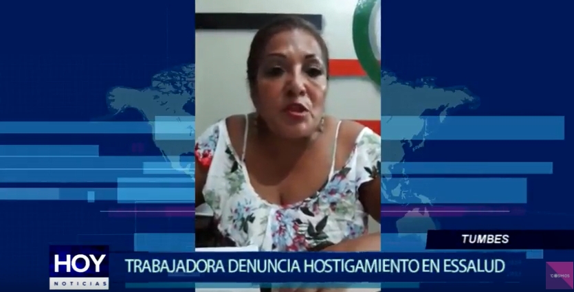 La servidora de ESSALUD Tumbes, Guillermina García Dioses, denunció al director de dicha institución, por hostigamiento laboral. según refiere, la trabajadora, se le ha aperturado un proceso administrativo, por denunciar diferentes casos de corrupción.