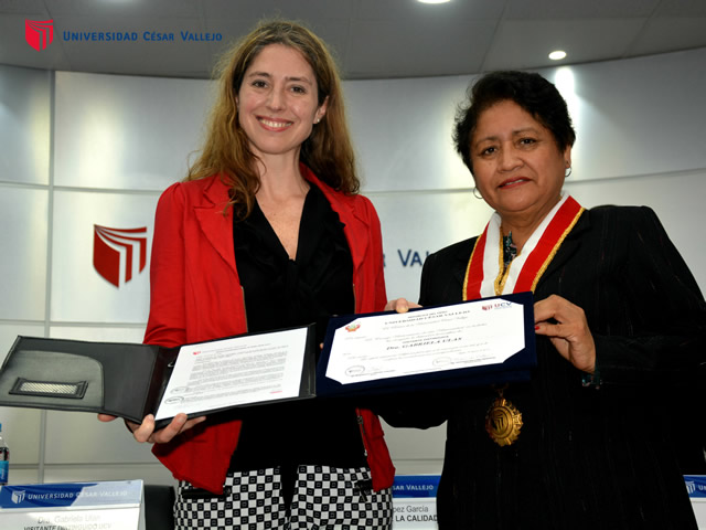 Ellos fueron: El Dr. Jorge Bravo Cucci, autor de diversos libros y ganador de varios premios internacionales como: Global Law Experts Peruvian y Corporate Inti Mgazine 2010. El destacado especialista recibió de manos de la Vicerrectora de la Calidad de la UCV, Dra. Mercedes López García, la medalla, resolución y diploma que lo incorporan al claustro universitario como Profesor Honorario.