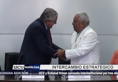 Se suscribió el Plan de Acciones 2015, en el marco del convenio entre la Universidad César Vallejo y EsSalud. Profesionales de dicha institución recibirán capacitaciones y podrán realizar estudios de postgrado en la UCV, mientras que estudiantes vallejianos realizarán prácticas preprofesionales en diferentes centros asistenciales de EsSalud.