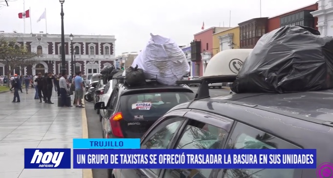 Según dijo Mario Moreno, dirigente del frente de taxistas, llegaron para ofrecerse voluntariamente ante las autoridades para disponer la basura con apoyo de los volquetes que entregaría el Gobierno Regional para el recojo de los residuos.