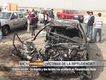 Un muerto y dos heridos dejó la colisión entre un taxi y un bus interprovincial en la carretera Panamericana Norte. Según testigos, el auto invadió el carril contrario y provocó el accidente. En el interior se encontraron indicios de bebidas alcohólicas.
