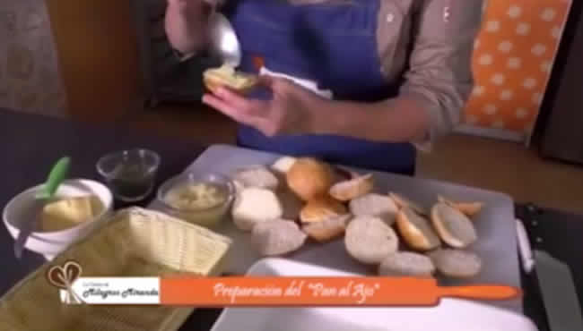 «Pan al Ajo», que rico amigos, este pan al ajo se ve buenazo y estuvo muy bueno, una entradita hecha por la mejor, Milagros Miranda Vera en su programa, La Cocina de Milagros Miranda.