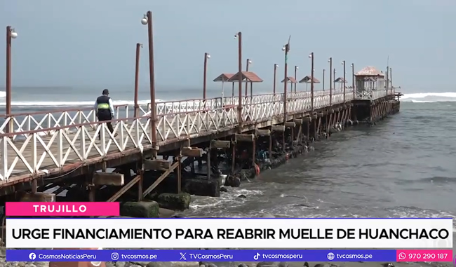El muelle de Huanchaco, uno de los atractivos turísticos del balneario, continúa cerrado. Como se sabe, esta medida cautelar fue impuesta por la Capitanía de Puerto de Salaverry de la Marina de Guerra. Especialistas han señalado que mejorar su infraestructura deberá ser en un 90%.