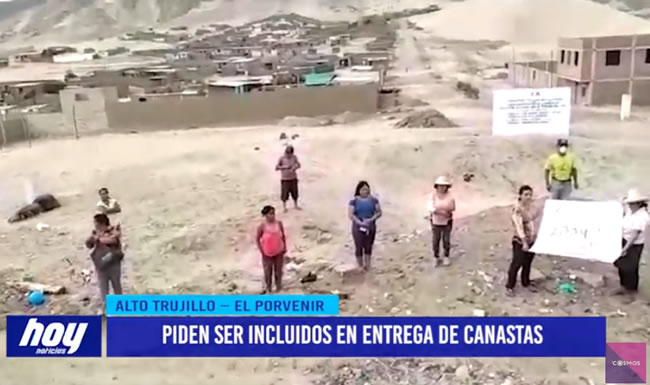 Un grupo de pobladores del barrio 3 C ampliación del centro poblado Alto Trujillo, pidió a las autoridades apoyo urgente, pues no han recibido ni siquiera el bono de los 380 soles y no tienen para seguir subsistiendo.
