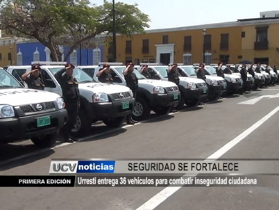 El Ministro del Interior, Daniel Urresti, presidió la ceremonia de entrega de 36 camionetas para las dependencias policiales con la finalidad de mejorar la seguridad ciudadana. Asimismo, anunció la llegada de dos mil policías el próximo año.