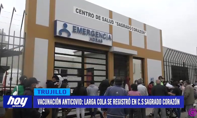 Nuevamente una larga cola se registró en el centro de salud sagrado corazón, en la ciudad de Trujillo, donde ciudadanos manifestaron que llegaron en la madrugada para lograr ser atendidos, asimismo desconocieron que los locales como el CEPUNT y el colegio Rafael Narváez, hayan vuelto a habilitarse para la vacunación anticovid.