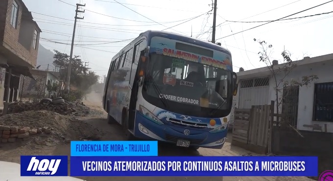 La ola de asaltos en el distrito trujillano de Florencia de Mora es a cualquier hora del día, por lo que vecinos viven atemorizados con asaltos a microbuses y hasta pasajeros por lo que piden a las autoridades presencia de efectivos policiales.