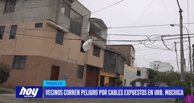 Cables expuestos de telefonía e Hidrandina en la urbanización Mochica son un peligro para la ciudadanía, moradoras mostraron su preocupación y piden a las autoridades hacerse presente cuanto antes, adultos mayores y niños son los que más corren peligro.