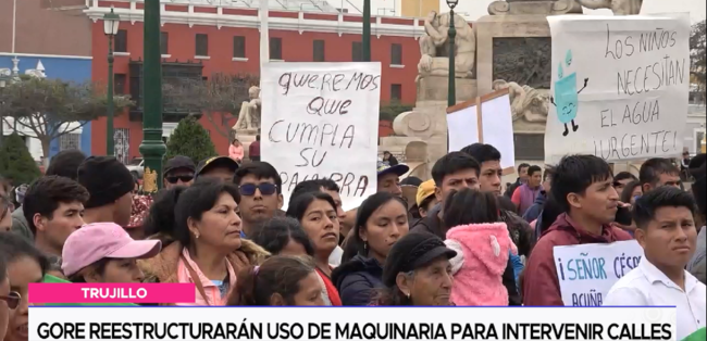 Los pobladores del distrito Alto Trujillo protestaron en la plaza mayor de la ciudad para denunciar un presunto mal manejo de la maquinaria para el mantenimiento de las calles para mejorar la accesibilidad.