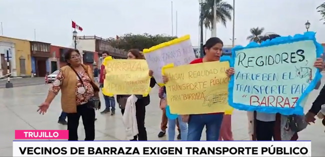 Vecinos del centro poblado de Barraza, ubicado en Laredo, exigieron a las autoridades municipales la implementación de una ruta de transporte público hacia su zona. Aseguran que el pedido ha sido reiterado durante más de veinte años sin obtener una solución concreta.