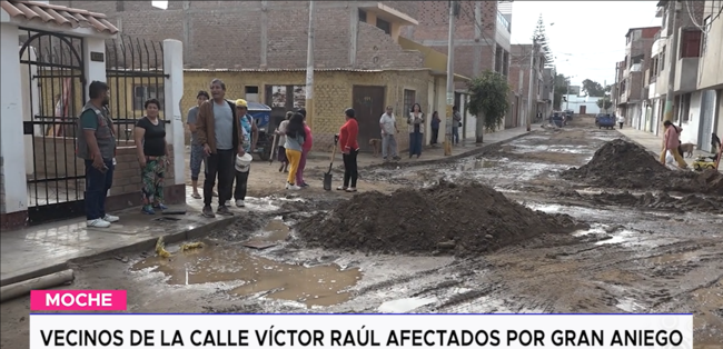 Vecinos de la calle Víctor Raúl, en el distrito de Moche, se encuentran seriamente perjudicados por un aniego provocado por la rotura de una tubería de agua, incidente generado durante la ejecución de obras en la zona. La situación se mantiene desde hace dos días, y ha ocasionado la acumulación de grandes pozos de agua, generando zancudos y un riesgo evidente para la salud de la población.