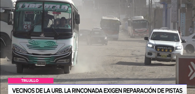 Las pistas de la urbanización La Rinconada, en el distrito de Trujillo, se encuentran en un estado crítico, generando malestar entre los vecinos y comerciantes de la zona. El deterioro de la vía, lleno de polvo y piedras, afecta el tránsito vehicular y la calidad de vida de quienes residen y trabajan en el lugar.