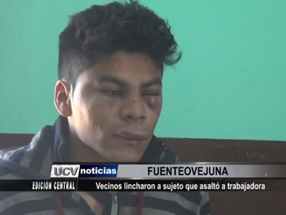 Los vecinos de la quinta etapa de la urbanización Santa María capturaron y lincharon a un maleante, quien junto a otro sujeto asaltó a una trabajadora del hogar. El sujeto está con el rostro desfigurado.