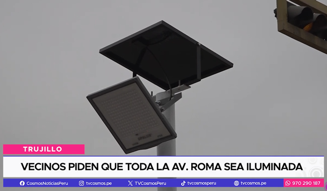La Municipalidad Provincial de Trujillo, a través de su Oficina de Servicios Generales, inició la instalación de luminarias con energía renovable en la berma central de la Av. Roma, en la urbanización San Nicolás, en el tramo que comprende desde la Av. Mansiche hasta la Av. Jesús de Nazareth. Se van a colocar 23 paneles solares con reflectores LED que permitirán mejorar la visión de los transeúntes en horas de la noche.
