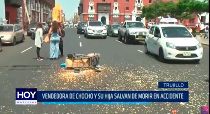 Una vendedora de chochos y su menor hija se llevaron el susto de su vida en pleno Centro Histórico de Trujillo.