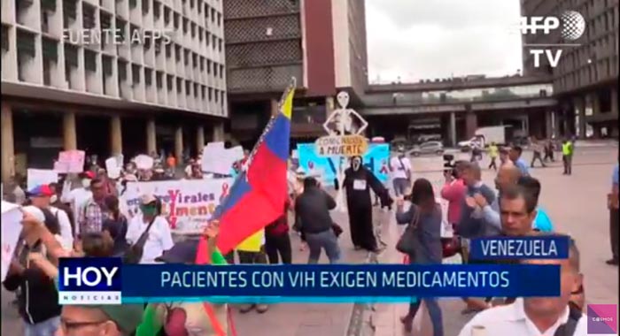 Pacientes venezolanos con virus de inmunodeficiencia humana (VIH), protestan frente al Ministerio de Salud en la plaza Caracas, debido a la falta de antirretrovirales y los medicamentos necesarios para atender su enfermedad.