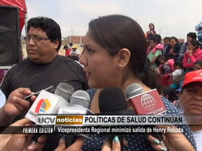 La vicepresidenta del Gobierno Regional, Mónica Sánchez, minimizó la salida de Henry Rebaza de la Gerencia Regional de Salud. La funcionaria aseguró que las políticas regionales en este sector no se han paralizado pese a que no se ha nombrado un reemplazante definitivo para el saliente médico.