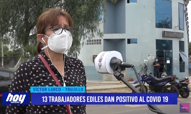 La gerente municipal de la comuna de Víctor Larco, Carmen Villanueva, informó que fueron 13 trabajadores municipales han dado positivo al Covid-19. Sin embargo, aún faltan 100 trabajadores pasar el tamizaje.