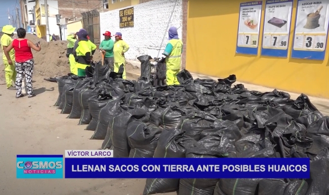 Trabajadores de parques y jardines de la Municipalidad Distrital de Víctor Larco desde hace algunos días vienen llenando sacos con tierra para colocarlos en las diversas entradas de las calles del balneario de Buenos Aires, pues se pretende de esta manera dejar despejada solo la avenida Larco ante posibles precipitaciones.