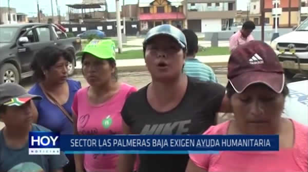 Damnificados del sector Palmeras Baja del distrito de Víctor Larco exigen al alcalde distrital la entrega de carpas, agua y comida. En esta zona, 20 familias han perdido sus viviendas a causa del desborde de la quebrada San Ildefonso, cuyas aguas cursaron Trujillo y llegaron a esta zona.