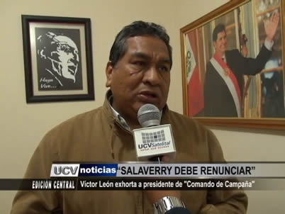 El ex Vicepresidente Regional, Víctor León, exhortó al presidente del comando de campaña del partido aprista, Daniel Salaverry, a renunciar al cargo. El pre candidato al Gobierno Regional le pidió que haga caso al descontento de la militancia.
