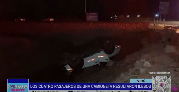 En la provincia de Virú, una camioneta se salió de la carretera con cuatro ocupantes a bordo. Este incidente ocurrió en la Panamericana Norte.