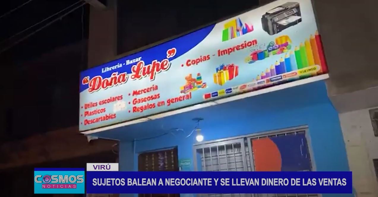 En la provincia de Virú, sujetos atacaron a balazos al dueño de una librería donde funciona también un agente bancario. La noche del miércoles, cuatro delincuentes llegaron a un local ubicado en la calle Ricardo Palma, dos de ellos ingresaron al negocio y se llevaron el dinero de la venta del día.