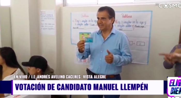 El candidato al Gobierno Regional de la Libertad de Alianza Para el Progreso (APP), Ing. Manuel Llempén asistió a emitir su voto en el colegio I.E Andres Avelino Cáceres en Vista Alegre y se mostró tranquilo en poder convertirse en el próximo gobernador de la región.