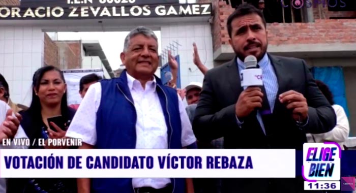 El candidato Víctor Rebaza por el partido Alianza Para el Progreso (APP), realizó su votación en la institución educativa N° 80026 Horacio Zevallos Gamez, en el distrito de El Porvenir, los simpatizantes saludaron al postulante a la alcaldía.